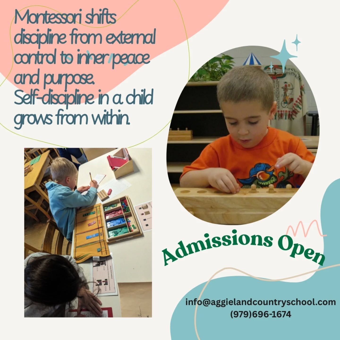 For over 40 years, Aggieland Country School has offered a nature-based Montessori education that integrates strong academics with outdoor classrooms, gardens, and peace education—nurturing independence, stewardship, and a lifelong love of learning in the Brazos Valley, like Bryan, College Station, Hearne, Navasota, Iola, Normangee, Franklin, Somerville, Caldwell, Snook, Millican, Kurten, Calvert, Wellborn, Wixon Valley, Hockley, Independence, Edge, Mumford, Cook’s Point, North Zulch, Wheelock and more.